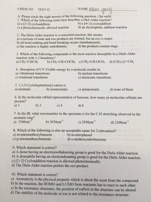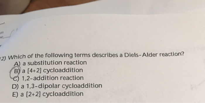 One is concerned with the reaction itself not the product as a whole. Diels-Alder reactions are concerted stereospecific and follow the endo rule. DielsAlder reaction can be described as a chemical reaction between the substituted alkene ie question_answer Q.